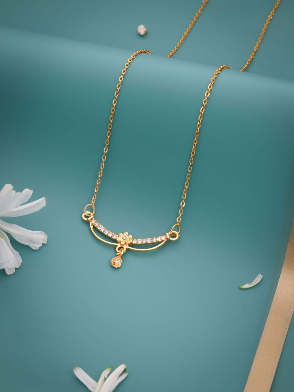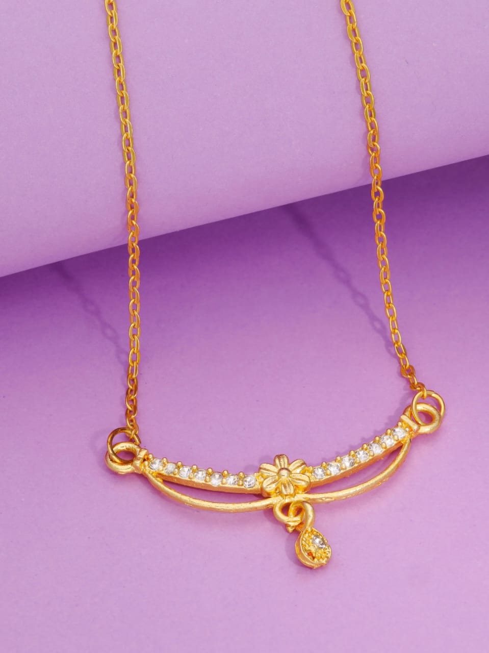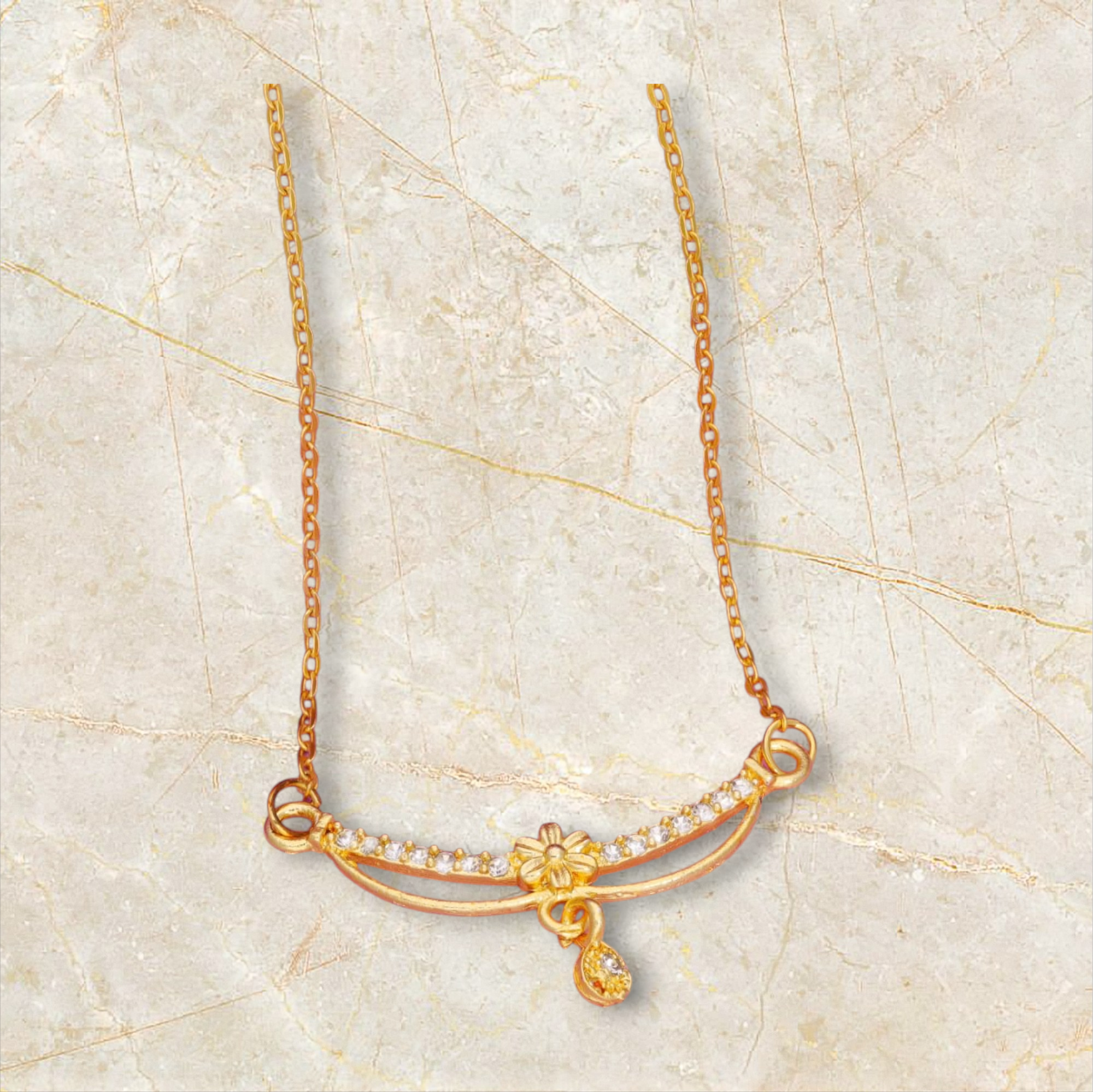 AREMBI Gold-Plated Pendant Set with White Stones for Women and girls-18 inch Chain, S-Hook Clasp-PACK OF 1