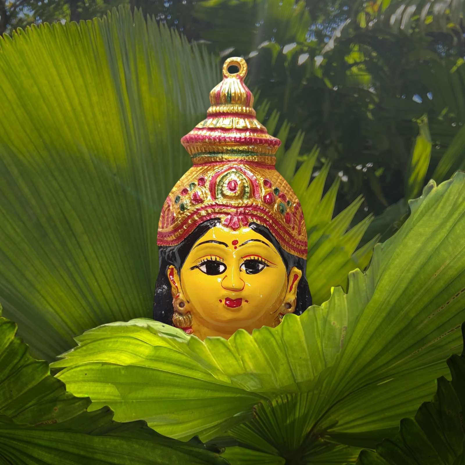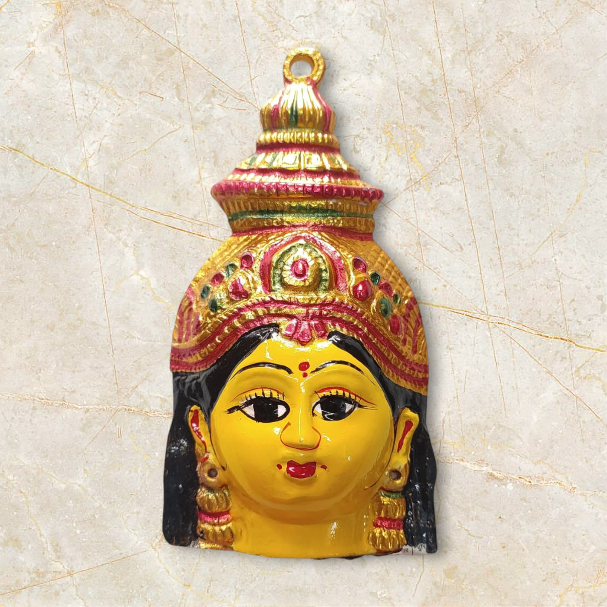 Metal Amman Face Wall Hanging, 6 Inch, Goddess Decoration for Varalakshmi Pooja, Navaratri Pooja, Home Decor Elevate your sacred space with this exquisite Amman Face wall hanging from Arembi-Metal. Measuring 23 centimetres (9 inches), this meticulously crafted decorative piece serves as a stunning focal point for your Varalakshmi Pooja and Navaratri celebrations. The divine face of the goddess radiates spiritual energy and traditional artistry, making it a perfect addition to your home temple or living space. Ideal for year-round display, this versatile wall hanging doubles as both a religious artefact and an elegant piece of home décor. The metalwork showcases fine detailing that captures the grace and divinity of the goddess, creating an atmosphere of devotion and aesthetic beauty. Whether displayed during festivals or as permanent home décor, this Amman Face brings a touch of divine presence to your surroundings.