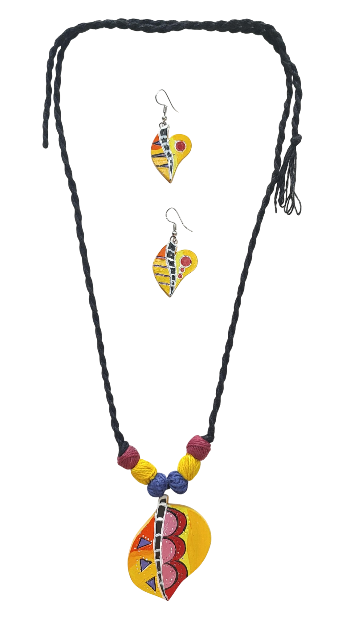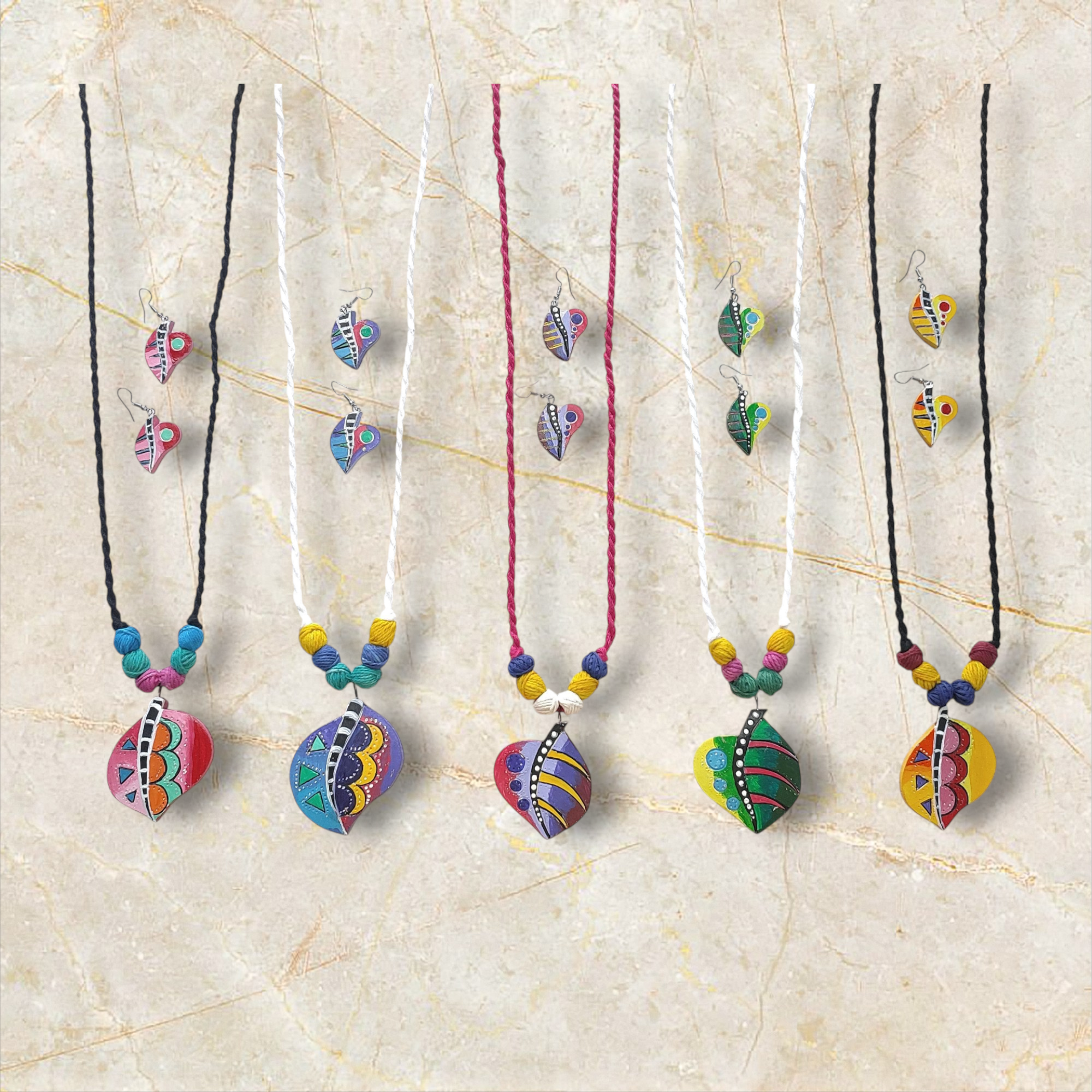 AREMBI Terracotta Necklace and Earring Set, Handmade Clay Painted Jewellery for Women and Girls. Clay work Fashion jewelry